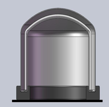 圖一 整體外觀示意圖 圖二 剖面圖(中空保溫+坡莫合金+保溫材料)