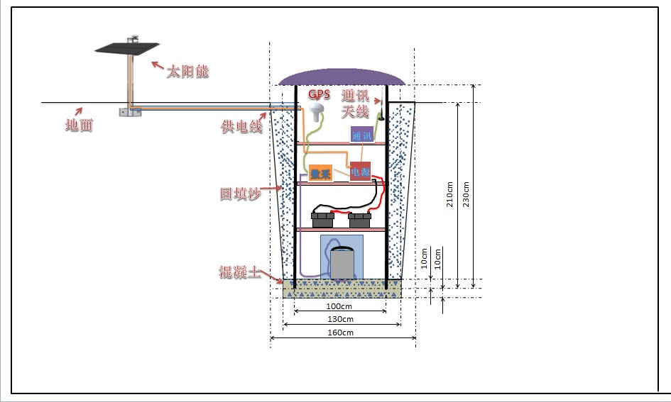 隨著寬頻帶流動地震觀測技術的發展,下沉式觀測已經被證明可以有效降低溫度對寬頻帶地震計低頻噪聲的影響;同時經試驗及國外相關項目經驗,淺井式觀測可以更好的降低溫度影響;因此臺陣觀測點擬大部分采用統一施工的下沉式觀測方式(300個),并且試點部分淺井式觀測(42個)。
